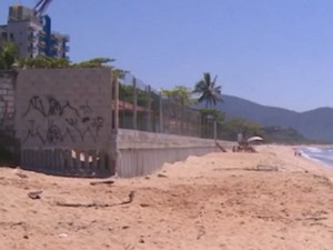 O muro, que foi reconstruído pela associação após ser derrubado por uma ressaca, é alvo de reclamação de vizinhos e turistas. Em dezembro, o caso foi denunciado à prefeitura e, segundo a fiscalização, na reconstrução teria havido avanço do muro na faixa de areia.